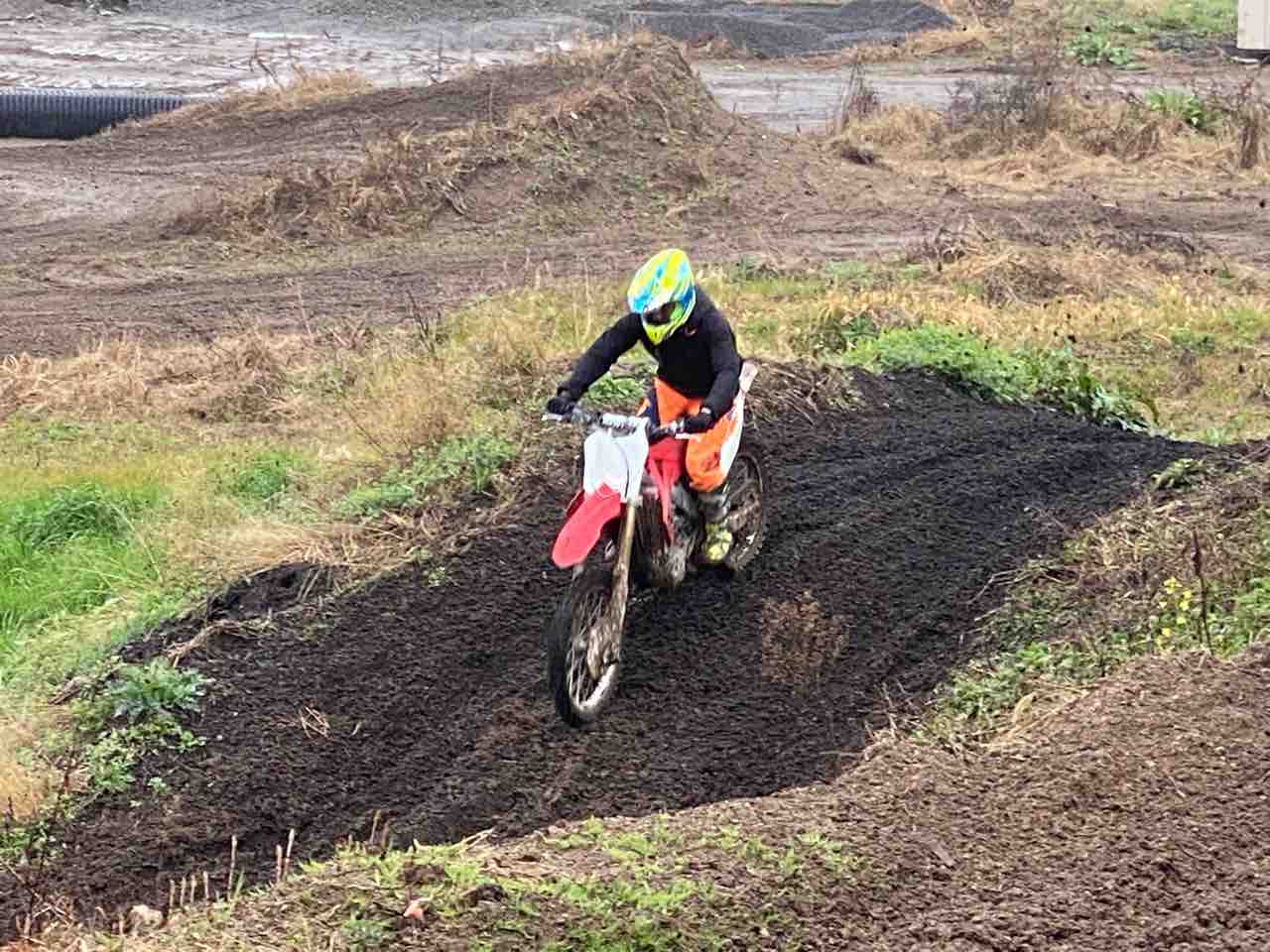- 初級ライダーの皆さん>マディコンディションの中、フラットコーナーの練習を中心に走行していましたが、午前と午後で平均スピードも変化があり、コーナー中もマシンがふらついたりする事が減ってスムーズに